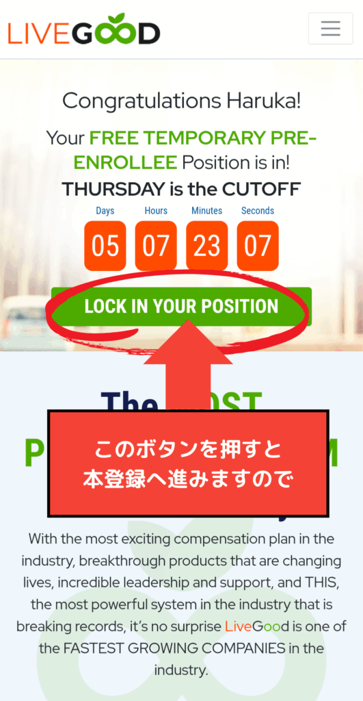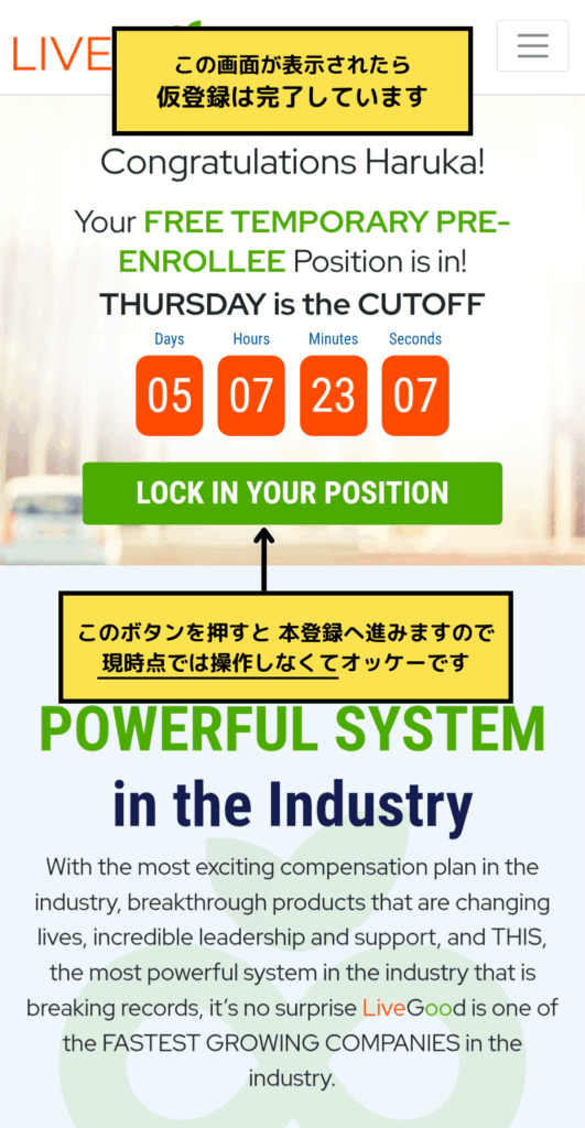 これで、仮登録(無料ポジション確保)は完了です!